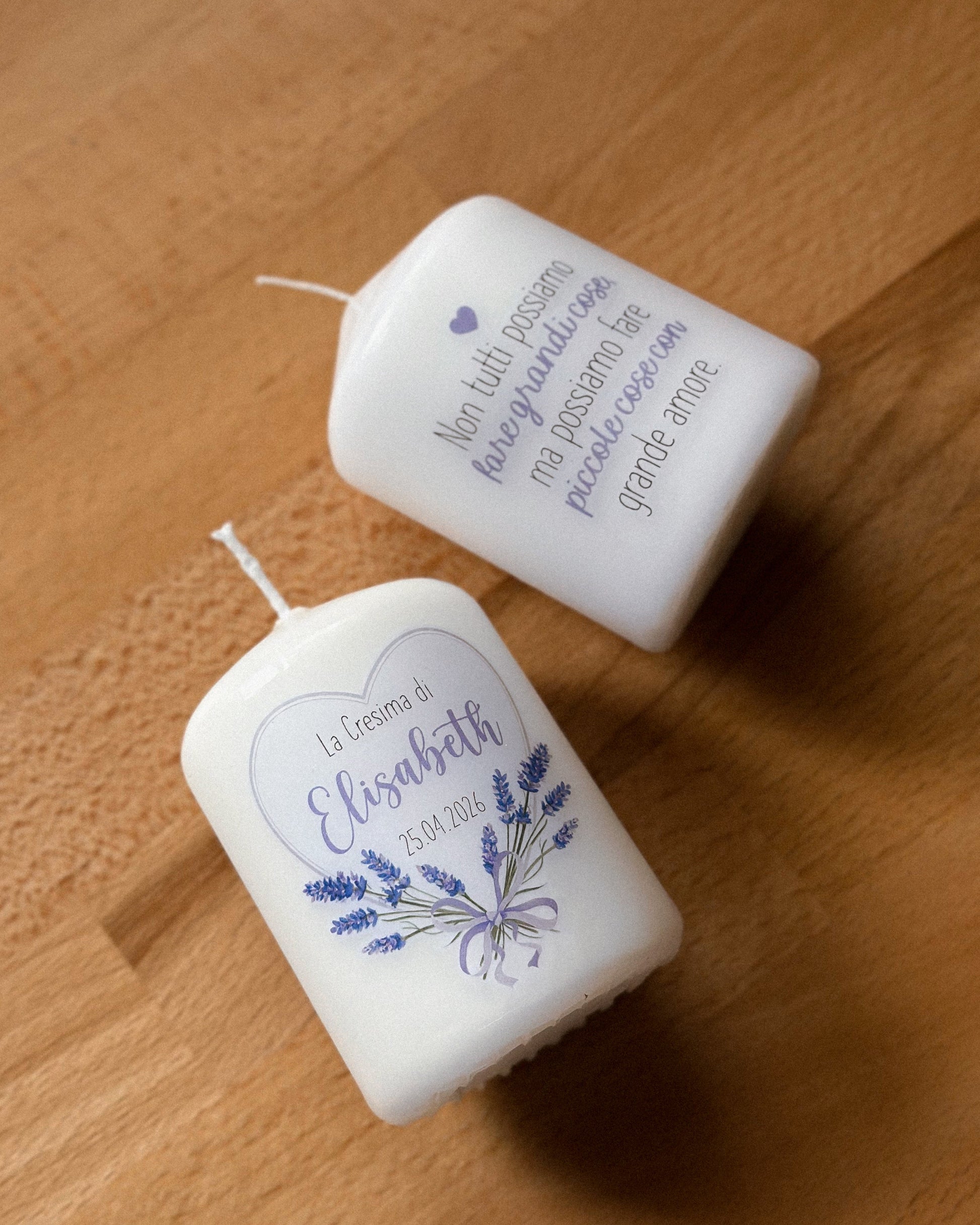 Ogni candela è rifinita con un protettivo trasparente che ne migliora la resa estetica e la durata nel tempo.